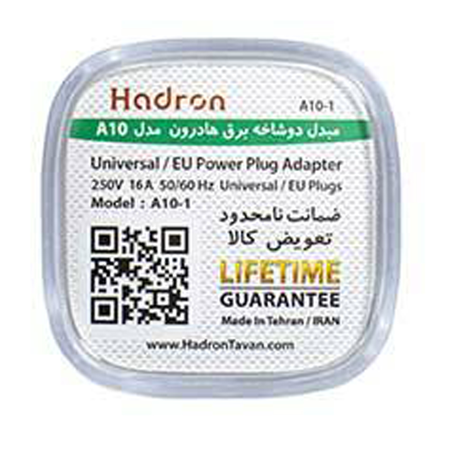 مبدل برق هادرون مدل A10-1 وسیله ای جهت اتصال دستگاههای برقی با تمام مدلهای سوکت برق با نوع پریز ایرانی است. این مبدل مناسب اتصال انواع دوشاخه های برق از نوع آمریکایی، ژاپنی، چینی، استرالیایی، انگلیسی، ایتالیایی و همچنین اروپایی به پریز برق ایرانی است و به گونهای منحصر به فرد طراحی شده است که در عین حفظ زیبایی و کاربرد، از کیفیت و استحکام خوبی برخوردار باشد. اتصالات فلزی بهکار رفته تماما از مس و برنج با خلوص بالا تولید شده تا احتمال مشکلات ناشی از کیفیت بد از جمله ایجاد حرارت به دلیل اتصال ناقص، ضعیف یا قطع شدن اتصال به مرور زمان، آسیب دیدن وسیله برقی و حتی در مواردی خطر آتش سوزی به حداقل برسد. همچنین بدنه این دستگاه از مواد پلی کربنات که از سخت ترین انواع پلاستیک است ساخته شده و در صورت استفاده مداوم به راحتی فرسوده نشده و طول عمر بالایی دارد. طراحی مدرن با نوار نوری که دور مبدل کشیده شده، به زیبایی این محصول میافزاید و رنگبندی مختلف آن حق انتخاب به خریدار میدهد.